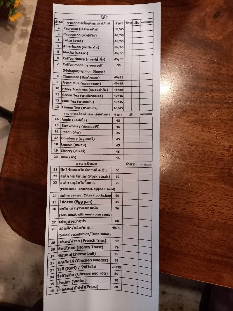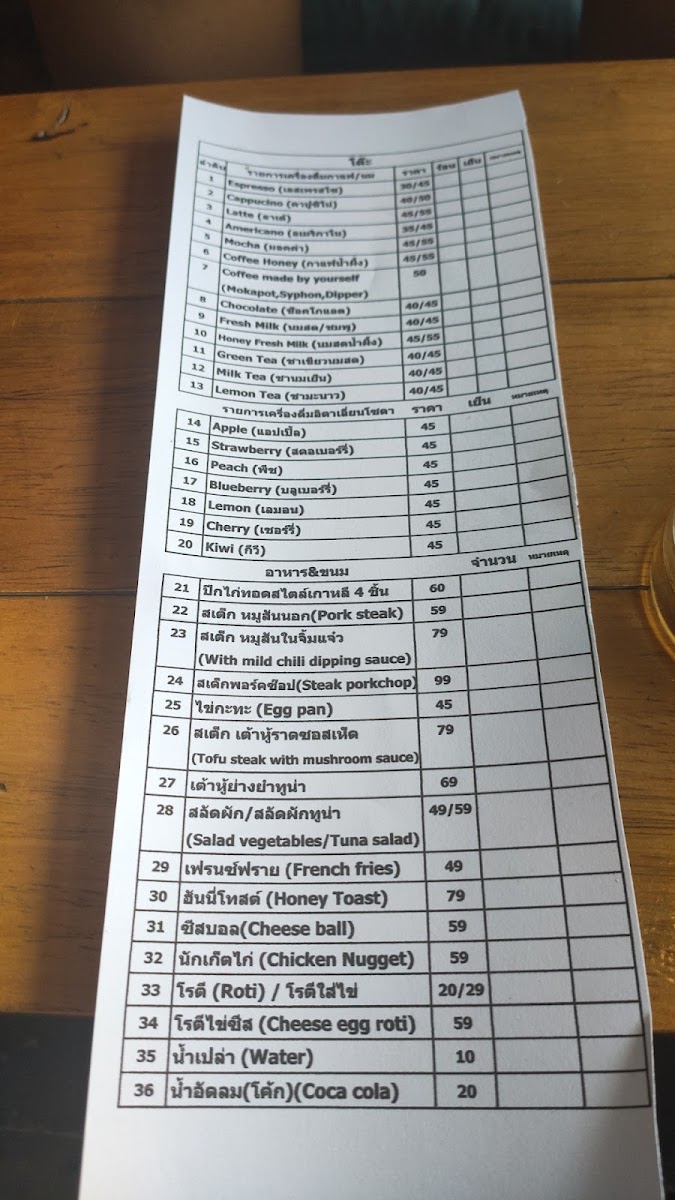 The menu, though succinct, showcases a stellar selection that embodies both quality and value. Coffee enthusiasts will appreciate the Espresso Cold at THB 50.00, which delivers a robust flavor that tantalizes the taste buds. For a refreshing twist, try the Mini Ice Black Coffee, inspired by natural and honey processes, available for THB 60.00. Each cup of coffee is made from imported beans, echoing the sentiment shared by customer 'Isaan Paul', who boldly claims it as “the best coffee in Kalasin by far.”